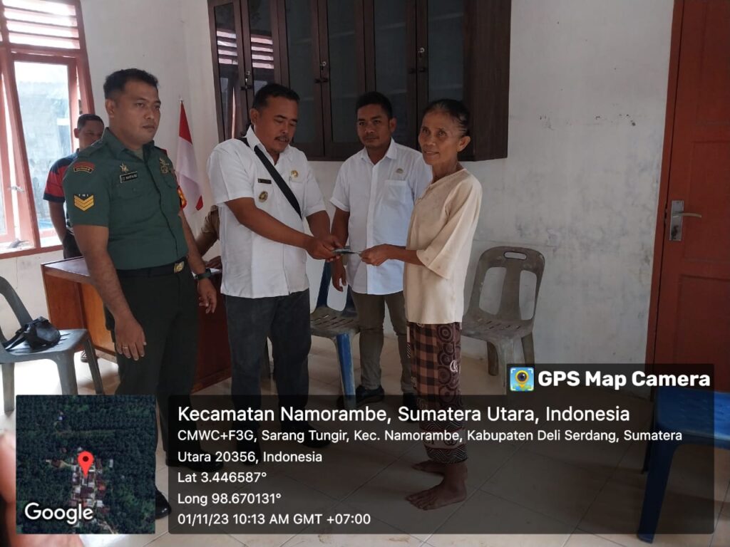Namo Rambe – Babinsa Koramil 14/PB Serka Frans Dedy melaksanakan pendampingan pada kegiatan penyaluran Bantuan Langsung Tunai (BLT) Dana Desa kepada warga bertempat di kantor Desa Salang Tungir Kecamatan Namo Rambe Kabupaten Deli Serdang. Rabu (01/11/23).