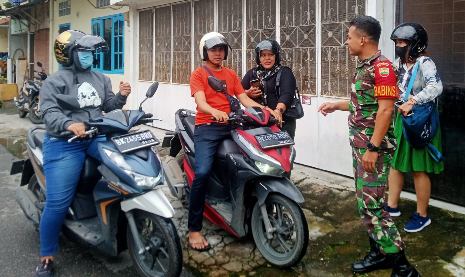 ANGGOTA KODIM 0201/MEDAN BABINSA KORAMIL 0201-01/MP INGATKAN PENGENDARA SEPEDA MOTOR AGAR MEMATUHI PERATURAN BERLALU LINTAS