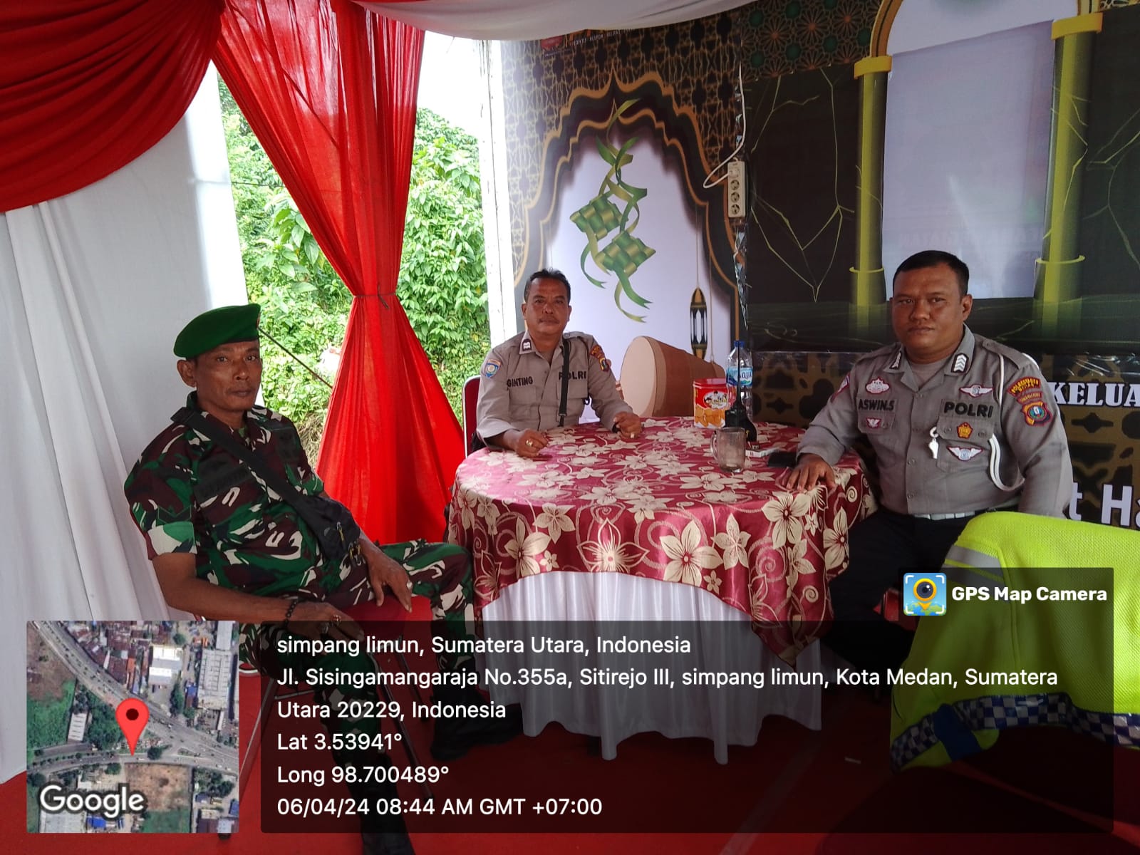 Medan : Anggota Koramil 0201-08/MA Kodim 0201/Medan Sertu Khairuddin bersama Tim Gabungan melaksanakan pengamanan di Pos Pam Ketupat Toba pada arus mudik Lebaran 1445 H tahun 2024, di Pos Pam Jalan SM.Raja, Kelurahan Harjosari II, Kecamatan Medan Amplas. Sabtu (06/04/2024).