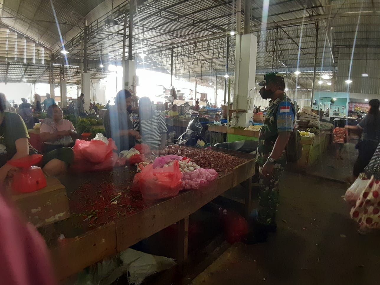 ANGGOTA KORAMIL 0201-08/MA LAKSANAKAN PENDISIPLINAN PROKES DI PASAR BARU SIMPANG LIMUN MEDAN