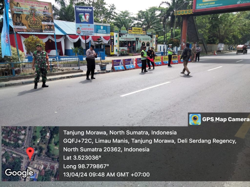 Dalam hal ini personil Babinsa Koramil 0201-16 /Tanjung Morawa, Serka Eko juniar dan Serda Ervan Syah putra melaksanakan kegiatan pengamanan Posko Lebaran Hari Raya Idul Fitri 1445 H, menyampaikan,” Dalam menyambut Hari Raya Idul Fitri 1445 H. TNI-Polri melaksanakan tugas pengamanan di Posko Lebaran dan pemantaun arus mudik bagi penguna jalan raya sekaligus mengantisipasi Keamanan dan kenyamanan bagi Warga saat menjelang perayaan Idul Fitri 1445 H.”