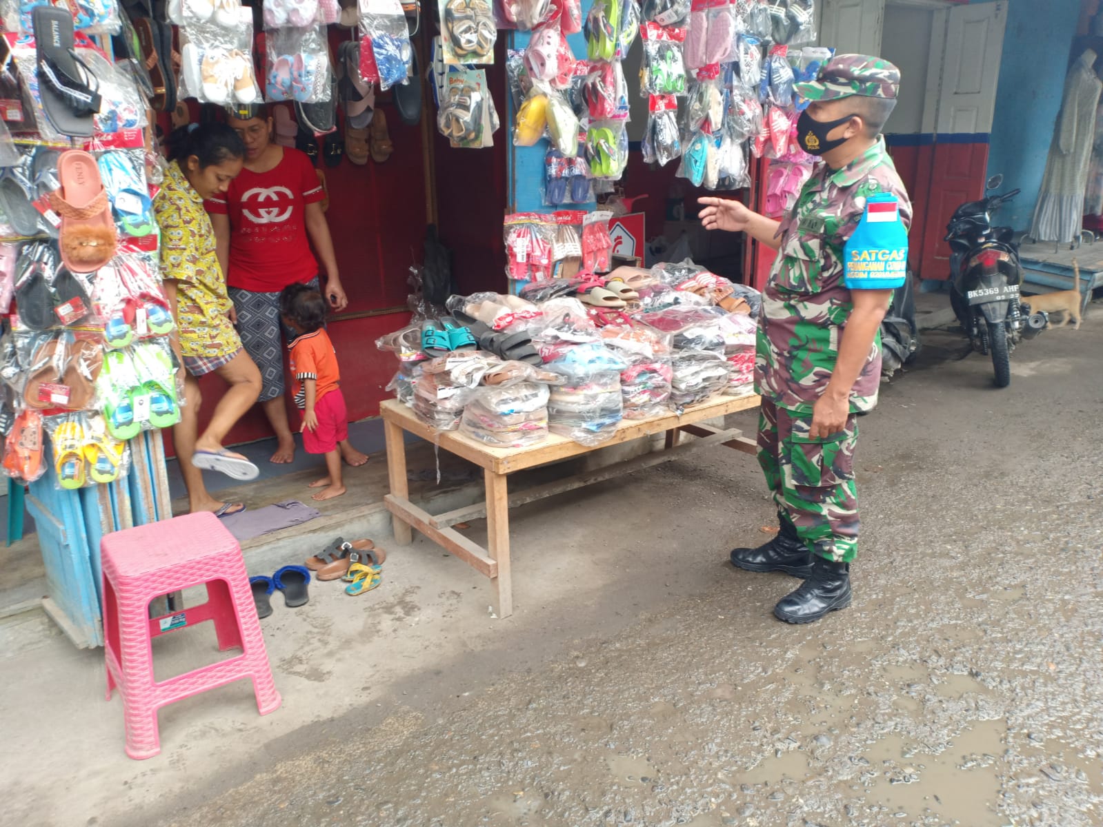 Anggota Koramil Himbauan Prokes di-Pasar Sadar Jalan Yos Sudarso Medan