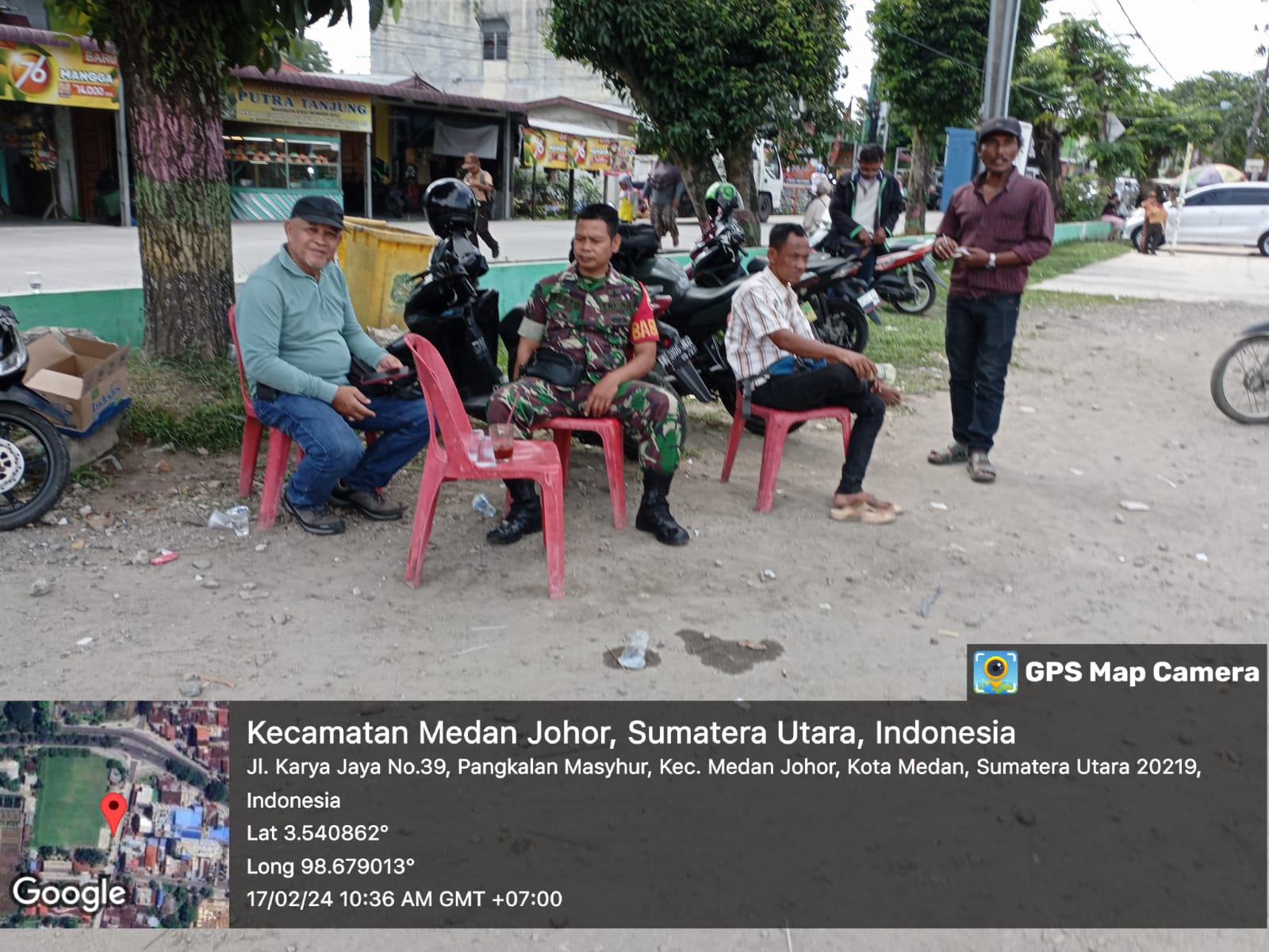 Babinsa Koramil 0201-08/MA Kodim 0201/Medan Serda Tirto melaksanakan anjangsana dan Komunikasi Sosial (Komsos) bersama warga pada hari Sabtu 17 Februari 2024. Bertempat di wilayah binaan di Jalan Karya Jaya, Kelurahan Pangkalan Mansyur, Kecamatan Medan Johor.