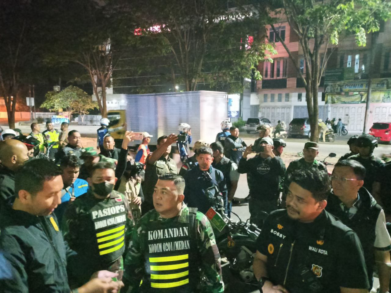 Patroli dipimpin langsung Walikota Medan M. Bobby Afif Nasution, SE.MM dan Ketua DPRD Kota Medan Hasyim didampingi Dandim 0201/Medan Kolonel Inf Ferry Muzawwad, SIP, MSi, Kapolrestabes Medan Kombes Pol Valentino Alfa Tatareda, Dandenpom 1/5 Medan Letkol CPM Dani Dahlan, SH, Kasatpol PP kota Medan Rahmat, Pasiop Kodim 0201/Medan.
