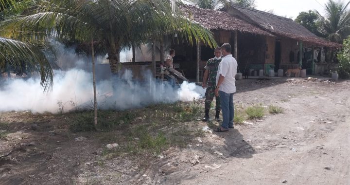 Pancur Batu – Babinsa Koramil 0201-14/PB Serka Frans Dedy bersama perangkat Desa mendampingi pelaksanaan fogging/penyemprotan