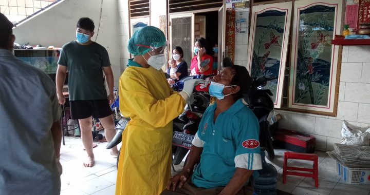 Medan IBabinsa Koramil 0201-09/Bawan Serka Fachzuzam Babinsa Kelurahan Belawan II bersama Nakes dari Puskesmas PKM