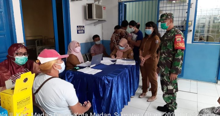 Medan Benteng | Untuk mensukseskan Vaksinasi Babinsa Koramil 0201-13/PST wilayah binaan Kelurahan Kenangan Serda Rahmaddani