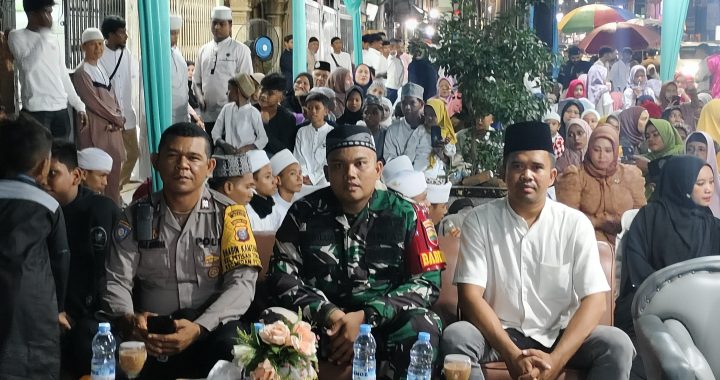 Tingkatkan silaturahmi, Babinsa Koramil 0201-01/MP Serda Rajoki Siregar, menghadiri acara peringatan Maulid Nabi Besar Muhammad