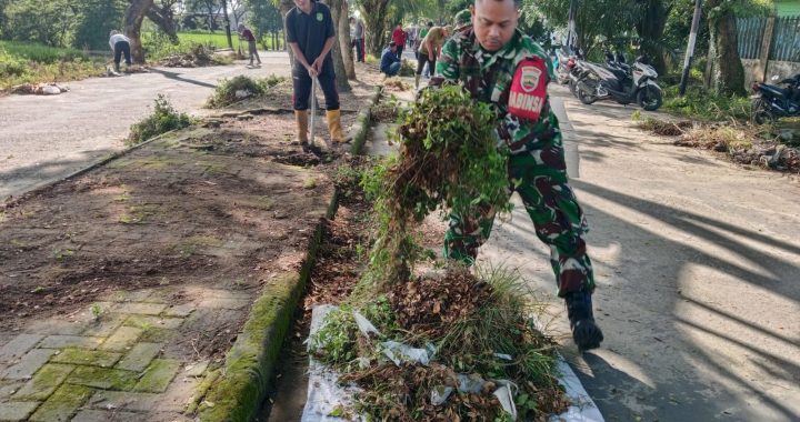 Melalui gotong royong massal, personel koramil 0201-10/MM turut berkontribusi dan berpartisipasi aktif, bersama seluruh komponen