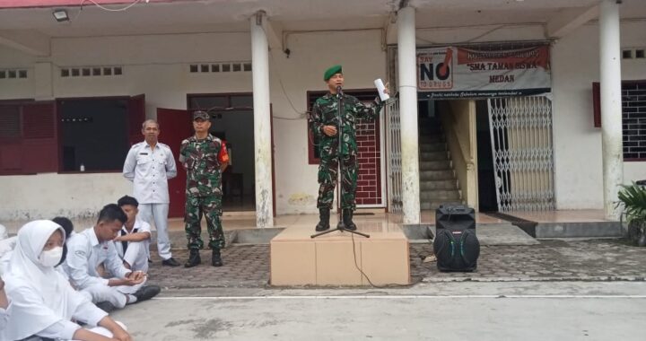Medan, – Babinsa Koramil 0201-07/MT dibawah pimpinan Pelda J Sijabat melaksanakan kegiatan upacara bendera mingguan