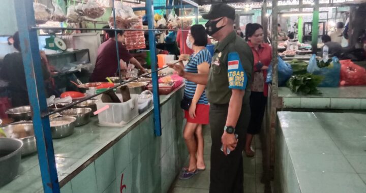 Medan Sunggal,Babinsa Koramil 06/MS Serma Edi Maryono dan Sertu Tugimin Terus Terapkan Prokes Di Pasar