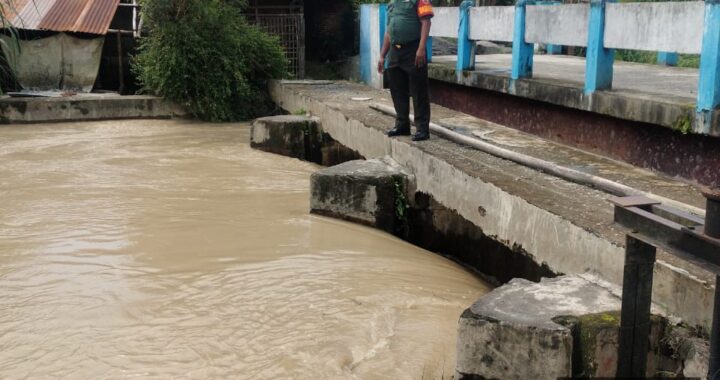 Tanjung Morawa -Babinsa Koramil 0201-16/TM Kodim 0201/Medan,Serma Sukamto melaksanakan pengecekan bendungan aliran irigasi yg mengakibatkan
