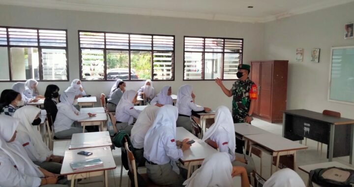 MEDAN – Babinsa Koramil 0201-08/MA Jajaran Kodim 0201/Medan Serda Ahmad Hasibuan kunjungi sekolah SMK Negeri