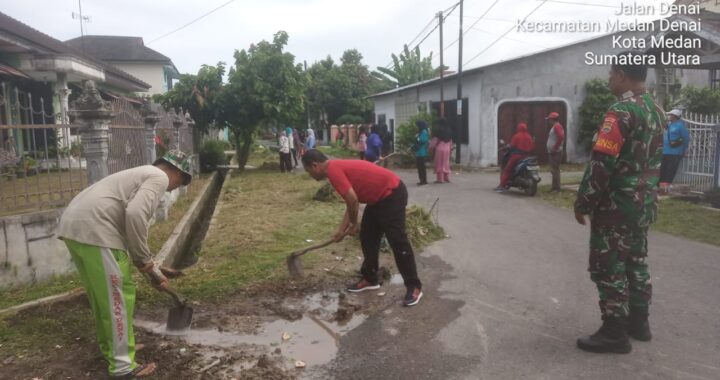 Medan DenaiGuna mengantisipasi banjir pada musim hujan seperti sekarang ini, Babinsa Koramil 0201-03/MD Serka Edy