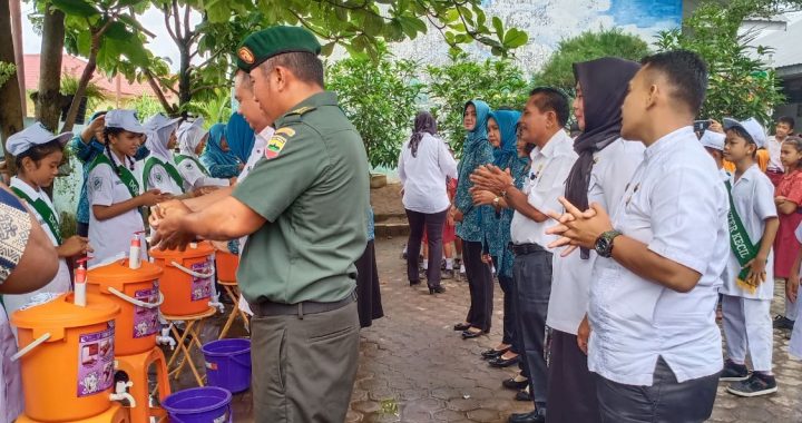 MEDAN Babinsa Koramil 08/MJ menghadiri undangan peringatan Hari Cuci Tangan Pakai Sabun Sedunia di SD,