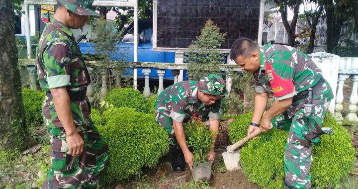 PANCURBATU Untuk mencegah abrasi tanah, jajaran Koramil 14/PB bersama masyarakat sekitar Makoramil 14/PB menggelar karya