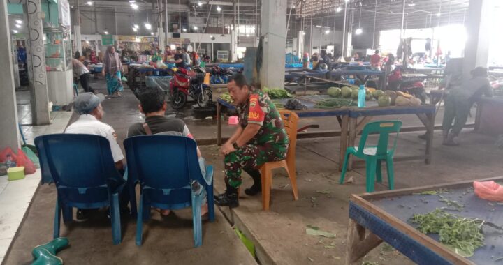 Babinsa Koramil 0201-08/MA Kodim 0201/Medan Sertu Edi Sumarno melaksanakan Komunikasi Sosial (Komsos) dengan pedagang dan security.