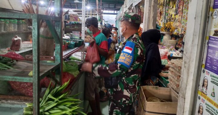 Medan Sunggal – Dalam Rangka Penanganan Virus Covid -19 ditempat keramaian,Babinsa Koramil 0201-06/MS, Kodim 0201/Medan