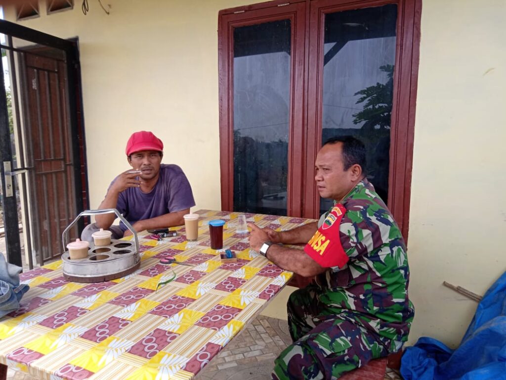 Sambangi wilayah binaan kali ini dikemas dengan bercengkrama santai di sebuah Warung Kopi (Warkop), sembari menikmati kopi, Babinsa juga memberi edukasi seputar keamanan dan ketertiban di wilayah binaan lingkungan yang disambanginya.