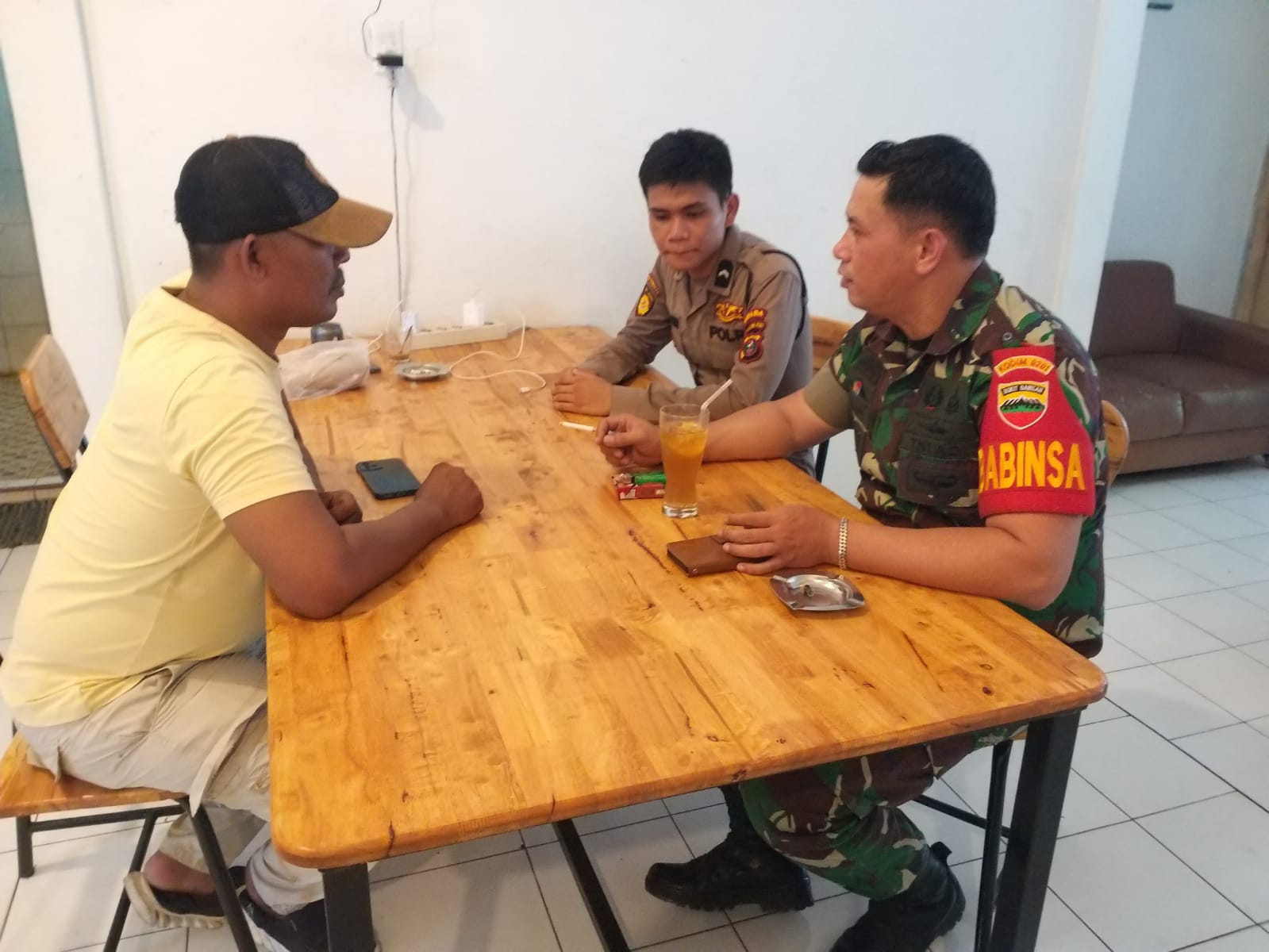 Sersan Satu Majalianto anggota Babinsa Koramil 0201-06/MS Kodim 0201/Medan Sempatkan Komunikasi Sosial dengan Anggota Kepolisian disaat meninjau dan monitoring penghitungan suara Pleno yang diselenggarakan oleh PPS, Bawaslu dan Saksi saksi dilaksanakan secara bertahap bergilir tiap Kelurahan jajaran Kecamatan Medan Helvetia.