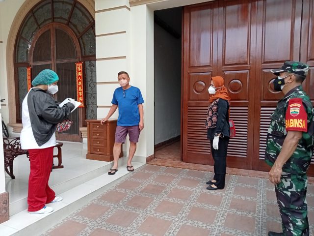 Babinsa Kelurahan Sukadamai Serma Surianto bersama petugas kesehatan TGC Puskesmas Polonia melaksanakan kunjungan sekaligus melaksanakan pelacakan kontak ke rumah salah satu warga yang tengah melaksanakan isolasi mandiri bertempat di Lingkungan III dan Lingkungan V Kelurahan Sukadamai Kecamatan Medan Polonia. Sabtu (5/2/2022)