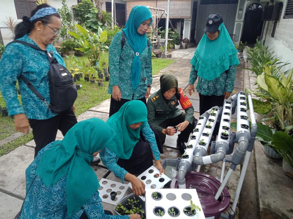Babinsa Koramil 01/MP, Peltu (K) Sulastri melaksanakan pendampingan kepada kader PKK tentang cara pembuatan tanaman hidroponik di rumah ibu Yusniar warga lingkungan 3 kelurahan Sei Putih Tengah Kecamatan Medan Petisah pada hari Senin tanggal 13 November 2023.