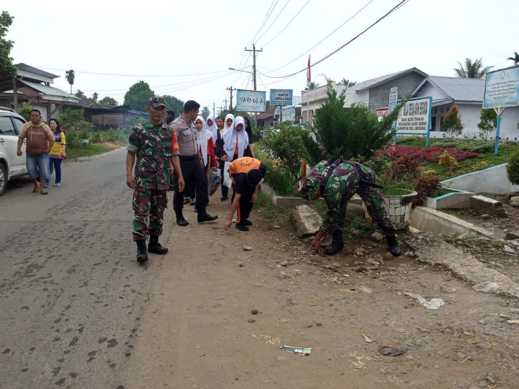 Babinsa dan Pelajar Bersih-Bersih Lingkungan