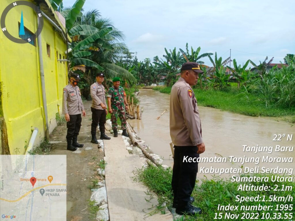 Tanjung Morawa, Babinsa Koramil 0201-16/TM sertu Rokhmad pada hari ini rabu tanggal 15 November 2022 pukul 10.30 wib melaksanakan patroli rutin gabungan bersama Polsek Tamora di sepanjang sungai sei belumai, untuk mengantisipasi dan memantau perkembangan debet air sungai sei belumai meluap yang di karenakan hujan deras tadi malam. Selasa (15/11/2022).