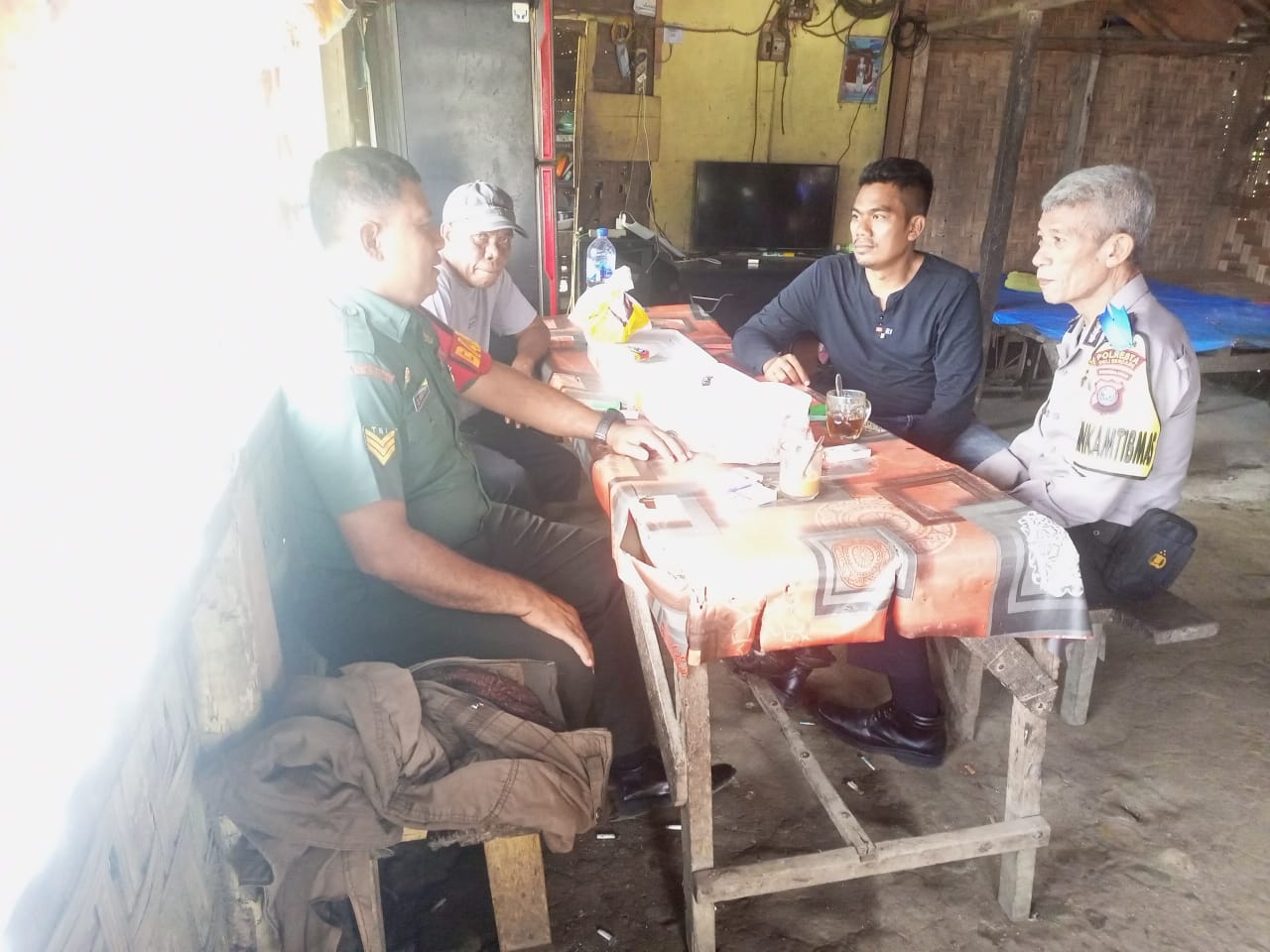 Babinsa Desa Tanjung Morawa B Serka B.Prayitno Bersama Bhabinkamtibmas Aiptu Joni Harto Komsos Dengan Tokoh Masyarakat Di Wilayah Binaan