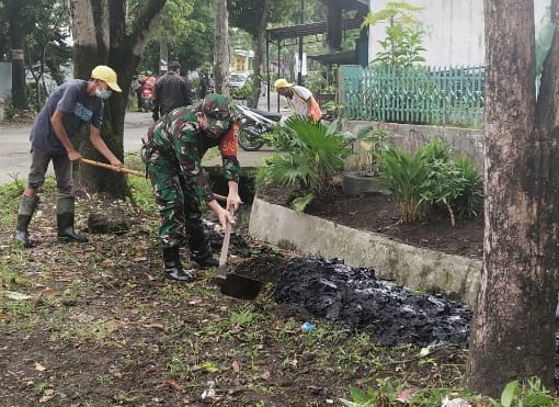 Sertu Umar Hasibuan bersama masyarakat binaannya melaksanakan aksi gotong-royong untuk membersihkan parit lingkungan bertujuan untuk memperlancar aliran air agar tidak terjadi banjir pada saat hujan tiba, dan juga agar warga masyarakat selalu menjaga kebersihan agar tidak mudah terserang penyakit.