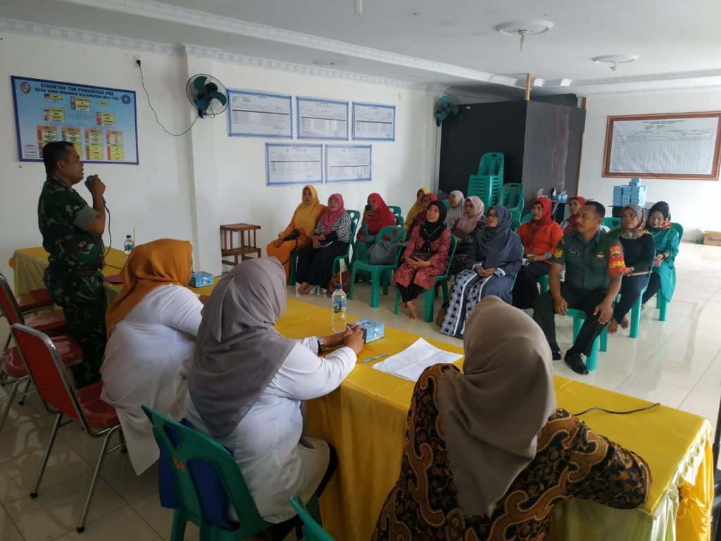 Babinsa Desa Suka Makmur Serma Kuryani, Rabu (18/12) menghadari rapat pertemuan Ketahanan Keluarga Kampung KB di Aula Kantor Desa Suka Makmur, Kec Delitu.