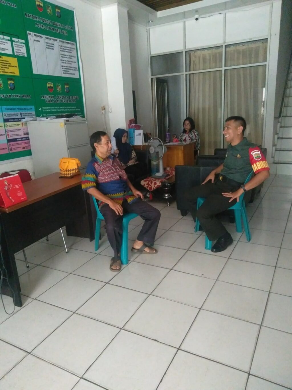 Dalam rangka meningkatkan silaturahmi dan hubungan kerja yang baik Serda Rudi sanjaya Babinsa Pusat pasar melaksanakan Komunikasi Sosial (Komsos) dengan Perangkat Kelurahan pusat pasar,Kamis ( 26/01/2023).