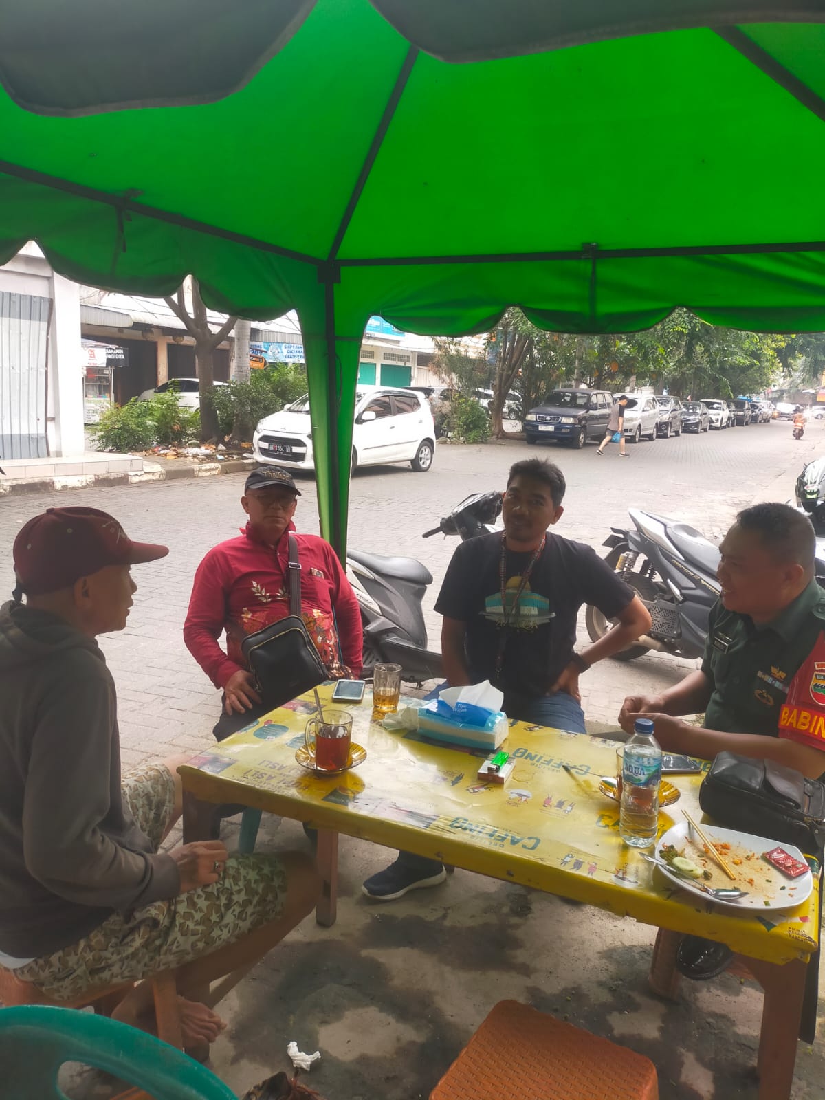 Medan Area ~ Babinsa Koramil 0201-04/MK , melaksanakan Komsos dengan Kepling,Ketua Karang Taruna dan Warga di Warung Kopi Nanang sembari menikmati segelas kopi yang berada dijalan Asia Baru Kelurahan Sukaramai II Kecamatan Medan Area. senin ( 15 -11-2023 )