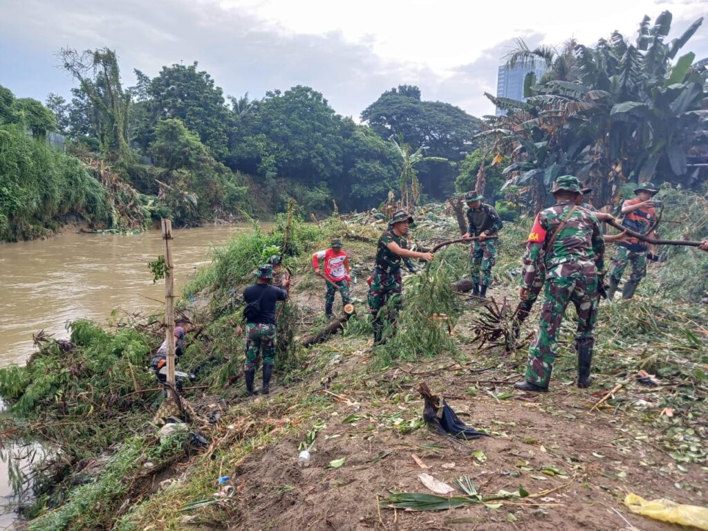 Personil Kodim 0201/ Medan Babinsa Koramil 0201-01/MP tergabung dalam kolaborasi dengan pihak Pemko Medan, bersama sama bergotong-royong membersihkan Bantaran sungai Deli yang melintasi wilayah Kecamatan Medan Barat, Jum’at 01 Desember 2023.