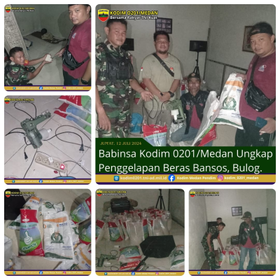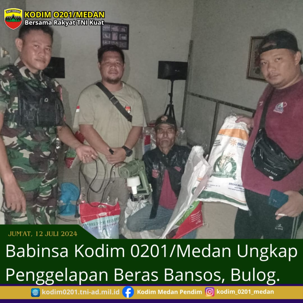 Berkat pembinaan teritorial (Binter) yang mantap dan tangguh, Babinsa 0201-14/Pancur Batu Kodim 0201/Medan Serda Jafar bersama Kepling, Bhabinkamtibmas berhasil mengungkap kasus dugaan penggelapan dan penyelewangan Beras bantuan sosial (Bansos) di Komplek Pondok Indah No.B 08 Dusun 6 Desa Tanjung Anom . Kec Pancurbatu, Kab. Deliserdang, Sumatera Utara (Sumut), Jumat (12/7/2024) pukul 20.00 Wib.