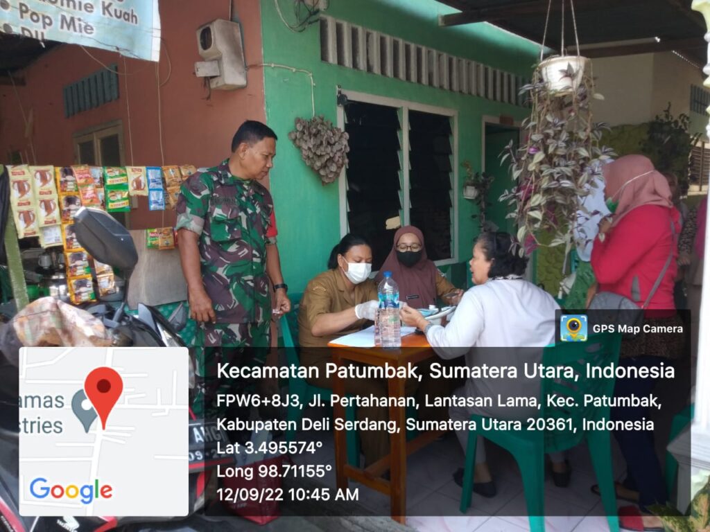 Peltu Sugiman Babinsa Koramil 0201-15/Delitua Kodim 0201/Medan, yang mana pada saat ini melaksanakan komsos bersama Nakes Puskesmas Patumbak dan Kader Posyandu di Desa Sigara gara Kec. Patumbak , Deli Serdang Senin(12/09/2022).