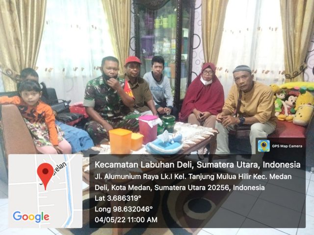 Dalam kesempatan tersebut, Babinsa Serda Rahmad mengunjungi rumah warga untuk acara Halal bil Halal di hari raya idul fitri menyampaikan tentang pentingnya komunikasi dengan berbagai komponen Masyarakat di jln Almenium raya guna mengetahui apa yang telah terjadi situasi di wilayah binaan nya dan mendapatkan informasi dalam rangka deteksi dini dan cegah dini.