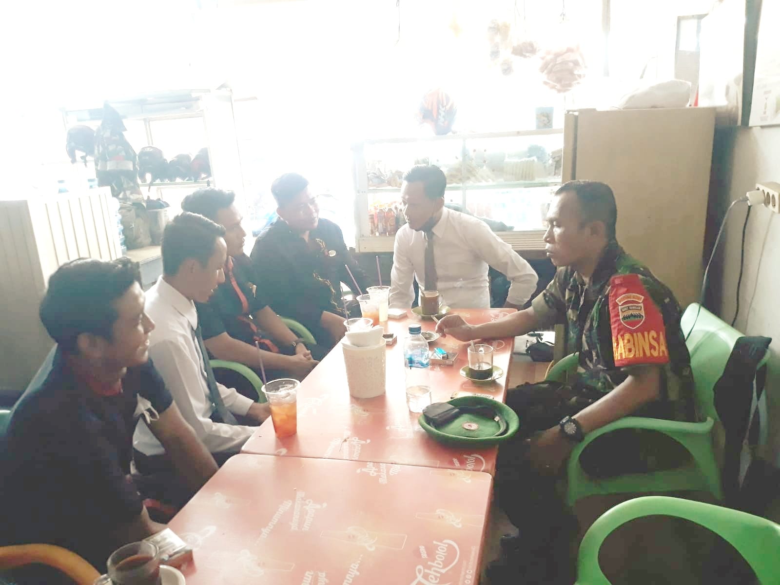 Medan Sunggal.Babinsa Koramil 0201-06/MS Peltu Subiyanto melaksanakan Komsos dengan Warga Jl. Beo Lk.14 bertempat di Warung Kopi bapak Tengku Kel.Sei Sekambing B, Kecamatan Medan Sunggal.