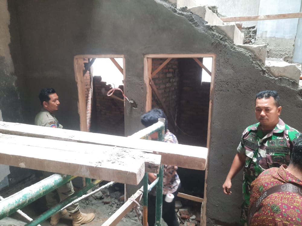 BABINSA KORAMIL 02/MT MENDAMPINGI KEGIATAN PENERTIPAN BANGUNAN RUMAH BERSAMA SATPOL PP, DAN STAF KELURAHAN PERINTIS MEDAN TIMUR