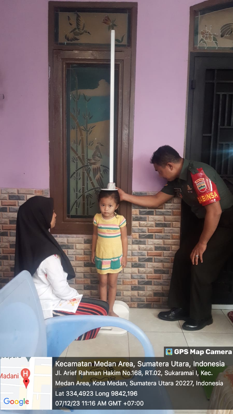 Medan Area- Dalam upaya turut serta dalam mendukung program pemerintah, Babinsa Serda Choirul Anwar Siregar Koramil 0201 – 04/MK monitoring kegiatan posyandu balita, bertempat di gg. Ganefo no.168, RT.02 Kelurahan Sukaramai 1, Kecamatan Medan Area. Kamis 07/12/2023.