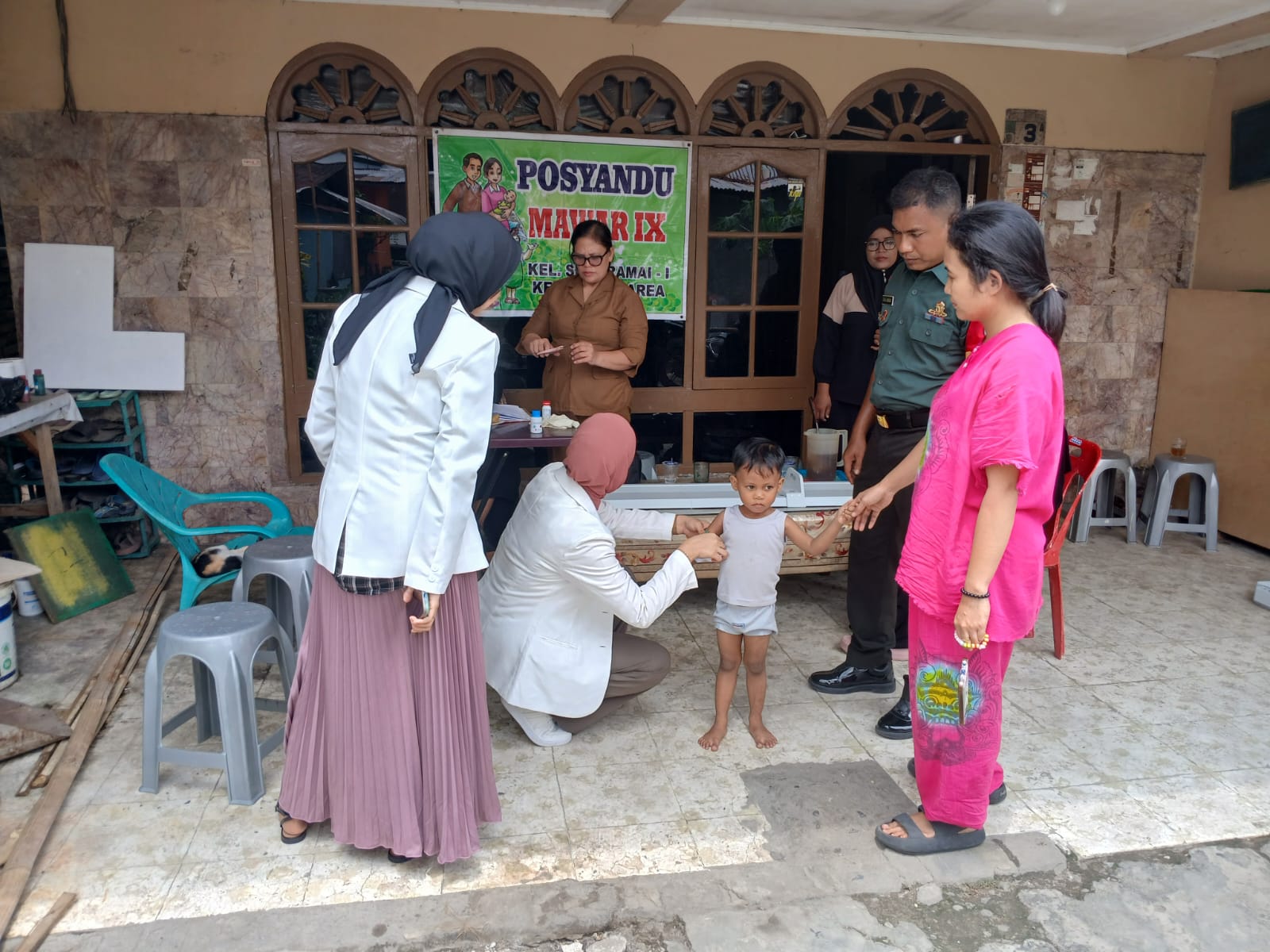 Babinsa Koramil 0201-04/MK Serda Choirul Anwar Siregar monitoring posyandu balita di lingkungan XI jln Medan Area Selatan gg.Pegangsaan no.3a Kel.Sukaramai 1 Kec.Medan Area.Senin (19/08/2024).