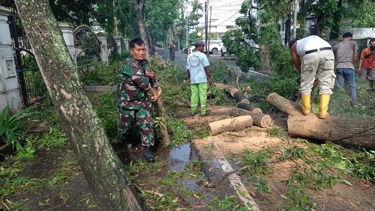 Sertu Nurwahyudi menuturkan, pohon tumbang tersebut terjadi karena kondisi pohon yang sudah tua dan tumbang terkena angin disaat hujan.