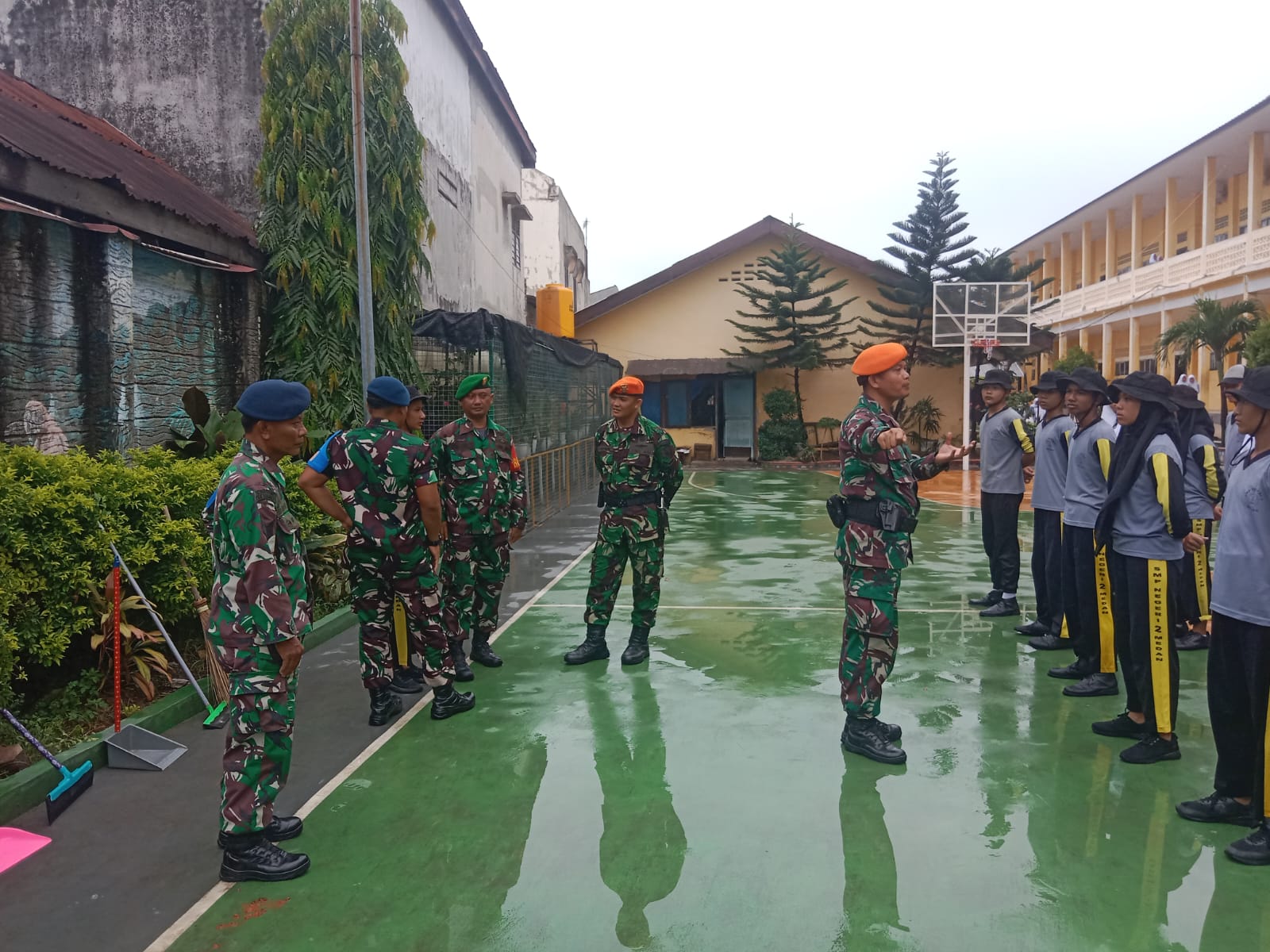 MEDAN | Dalam upaya membentuk karakter, kedisiplinan, dan kekompakan sejak dini, Babinsa Koramil 0201-05/MB, Kodim 0201/Medan, dipimpin Sertu Ach Taufik bersama Bhabinpotdirga Lanud Soewondo memberikan pelatihan dasar Peraturan Baris Berbaris (PBB) kepada siswa dan siswi Siswa SMPN 2 Medan, Selasa (26/9/2024).