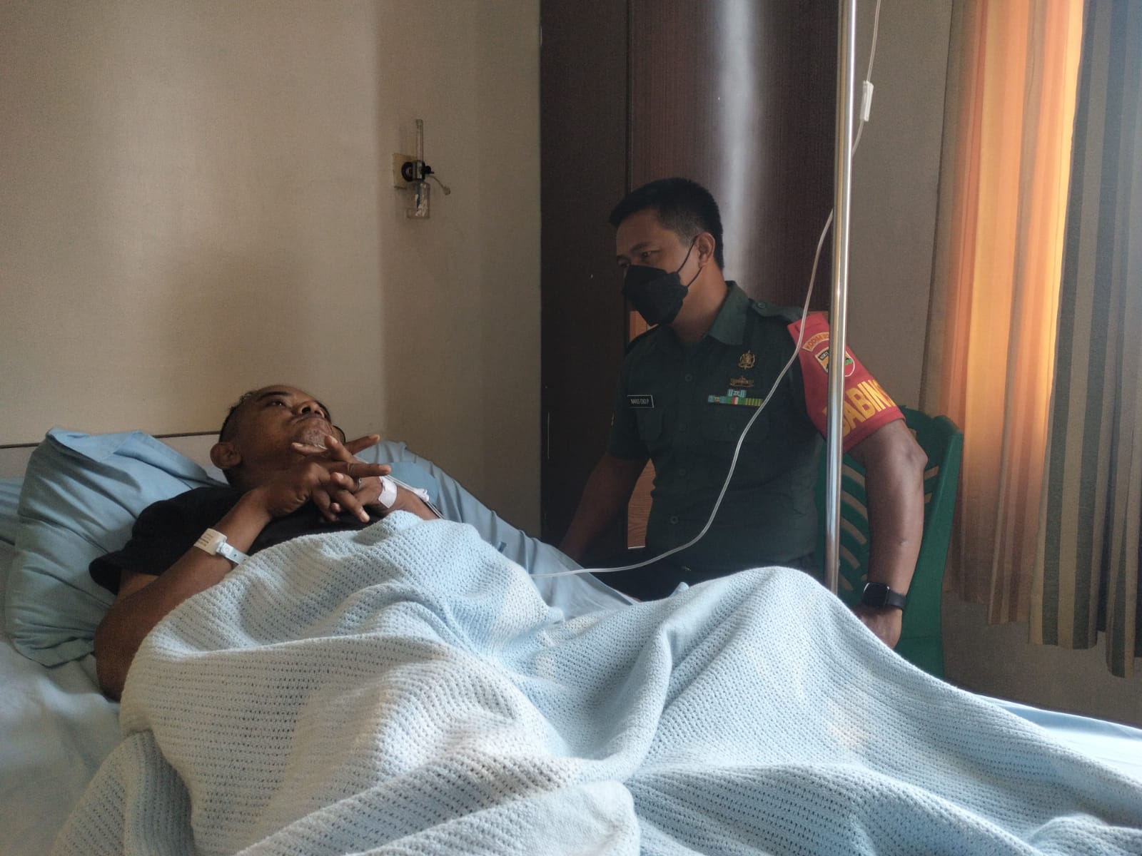 MEDAN 05/MB | Babinsa Koramil 0201-05/MB Kodim 0201/Medan Sertu Naris Eko menunjukkan kepeduliannya untuk menjenguk warga binaan yang terbaring sakit atas nama Bpk. Rahmad yang di rawat di RS. Martha Friska Jl. Multatuli No.1, Kelurahan A U R, Kecamatan Medan Maimun, Kota Medan.