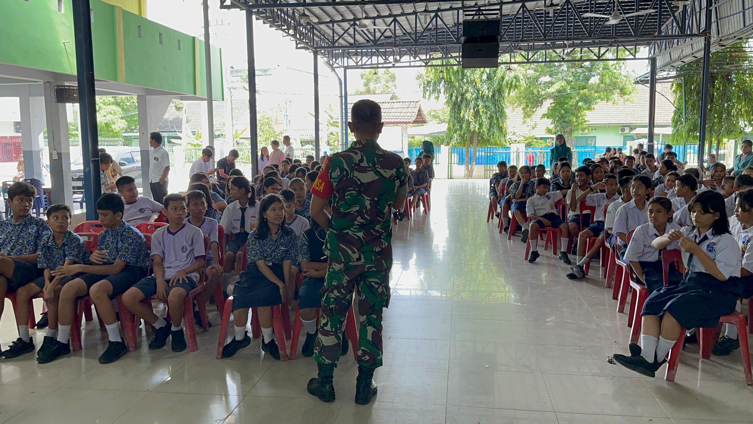 Babinsa Koramil 0201-05/MB Sertu Wijayanto melaksanakan kegiatan penyuluhan pencegahan kenakalan remaja terkait tawuran dan penyalahgunaan narkoba kepada siswa SMP dan SMA GKPI, Kelurahan Padang Bulan, Kecamatan Medan Baru.