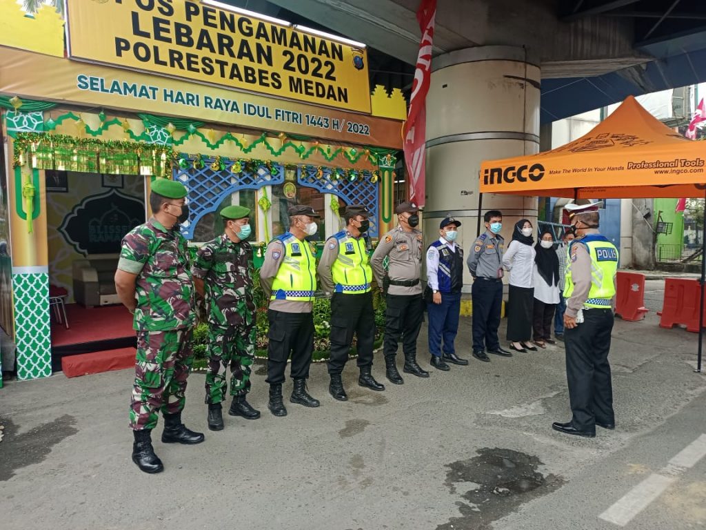 “Kita melaksanakan pengamanan di Pos Pam di depan Carrefour Medan Fair ini merupakan sebagian dari Pos yang lainnya yang tersebar di wilayah Kota Medan, dimana Pos yang di gelar bersama Polrestabes Medan ini guna menciptakan kondisi wilayah yang aman dan kondusif pasca Hari Raya Idul Fitri di Kota Medan”, ungkapnya.
