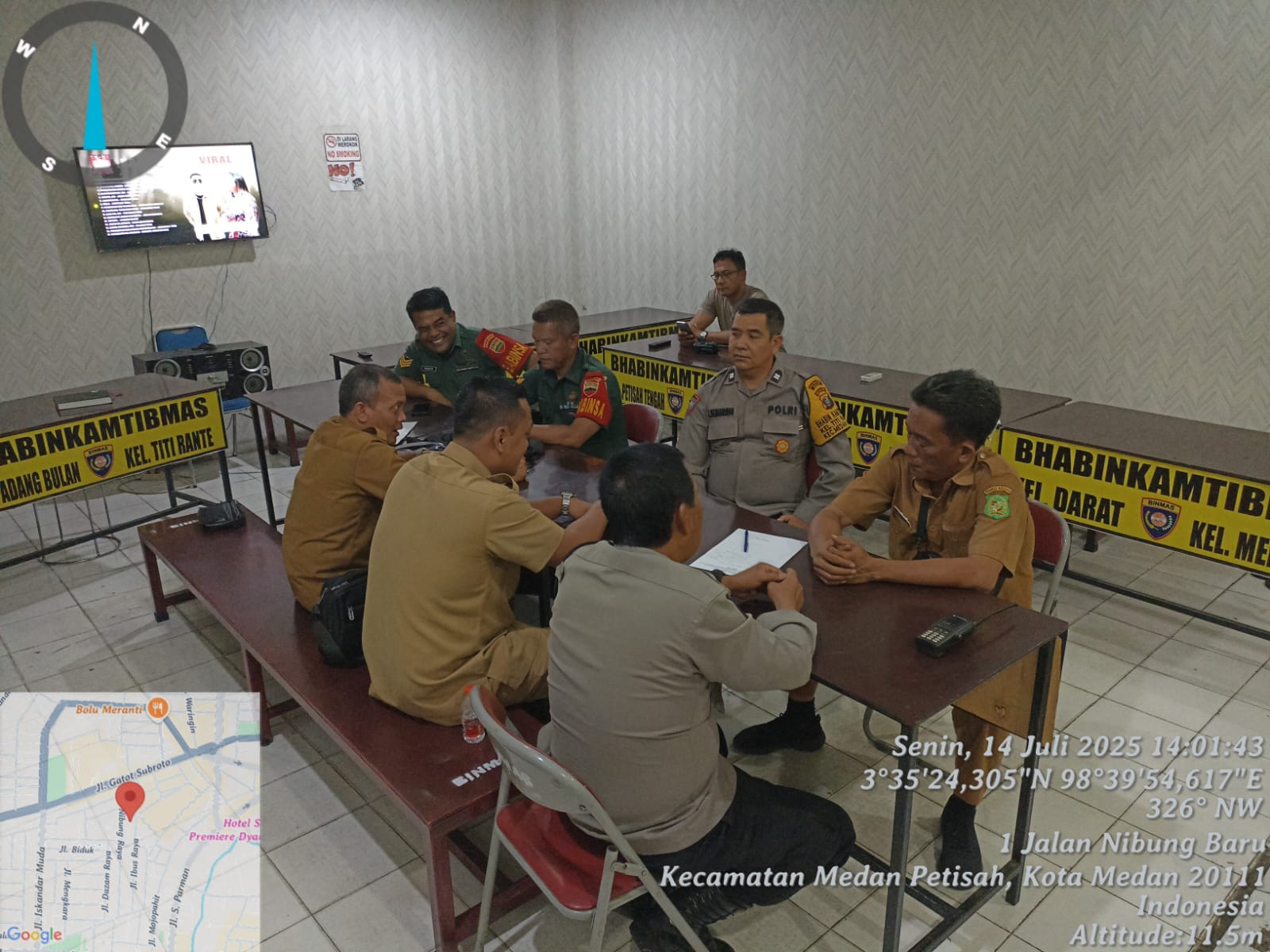 MEDAN 05/MB | Wujudkan Kamtibmas yang kondusif, Babinsa Koramil 0201-05/MB Kodim 0201/Medan Serka Ngadiyo dan Serka L Panggabean menghadiri rapat koordinasi bertempat di Ruang Problem Solving Polsek Medan Baru.