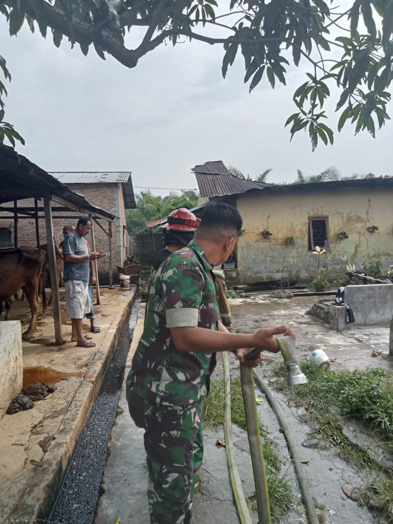Dilaporkan Serda Arifin, peristiwa kebakaran tersebut terjadi sekitar Pukul 14.00 Wib dan terdampak terhadap 1 (satu) unit rumah dengan persentase 80%.