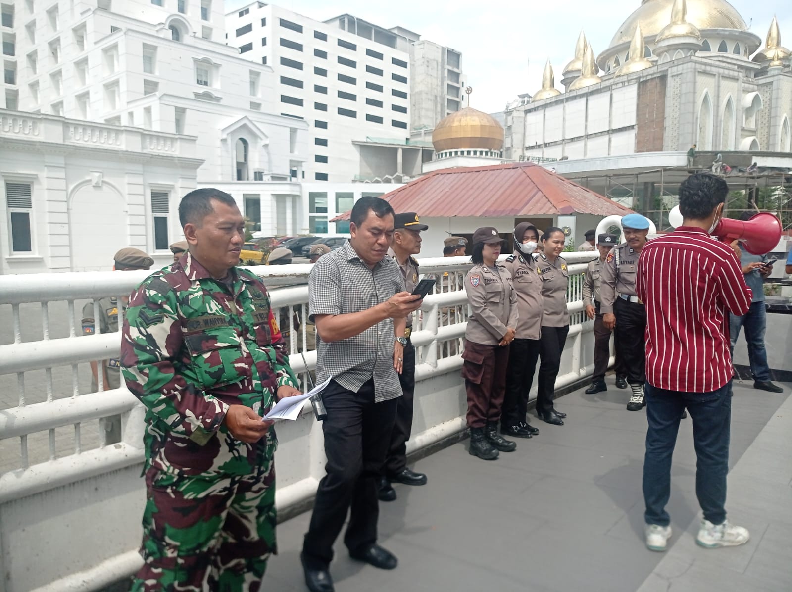 Sertu Nurwahyudi mengatakan, bahwa keberadaannya disini adalah sebagai Babinsa untuk memantau sekaligus membantu aparat dari kepolisian dalam mengamankan aksi unjuk rasa yang sedang berlangsung.