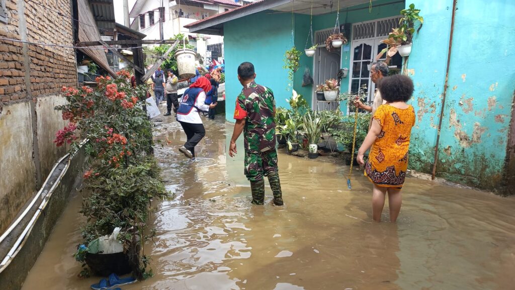 Babinsa Koramil 0201-05/MB Monitoring Banjir Luapan Sungai Deli Dan Sungai Babura
